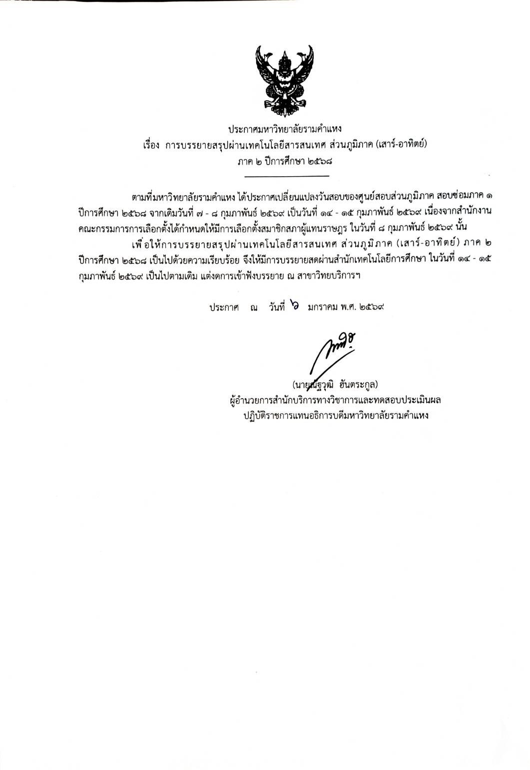 การบรรยายสรุปผ่านเทคโนโลยีสารสนเทศ ส่วนภูมิภาค (เสาร์-อาทิตย์) ภาค 2 ปีการศึกษา 2568 วันที่ 14-15 ก.พ.69)