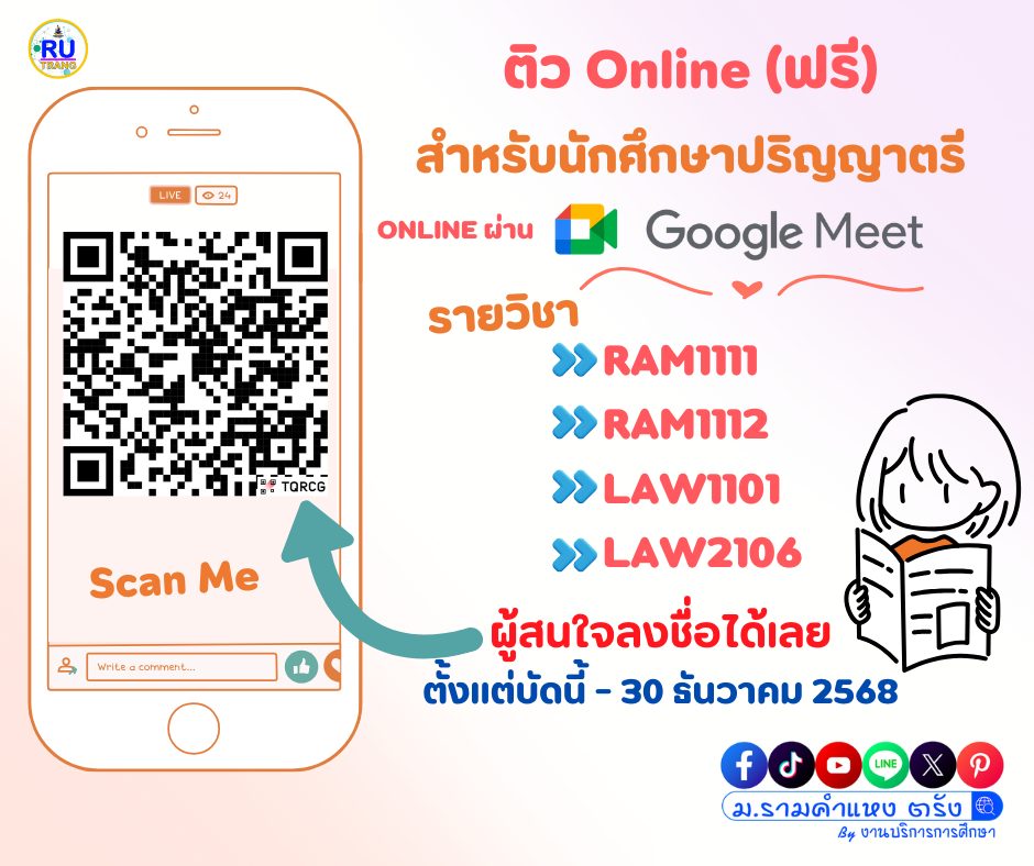 นักศึกษา ม.รามคำแหง ตรัง ห้ามพลาดโอกาสดีๆ!