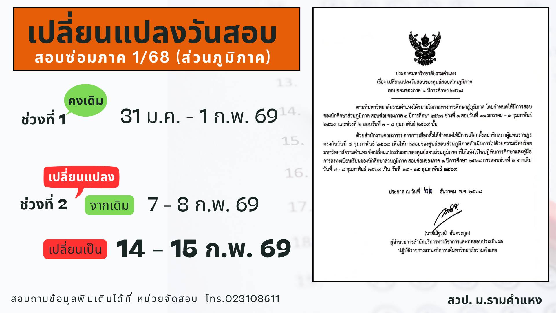 #เดิม สอบช่วง 1 ระหว่างวันที่ 31 มค.- 1 กพ.69